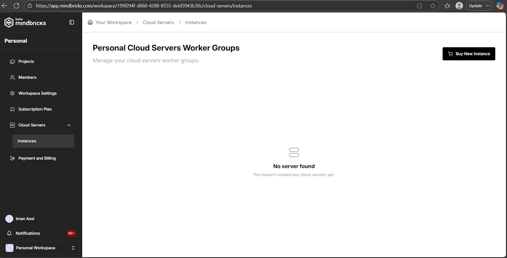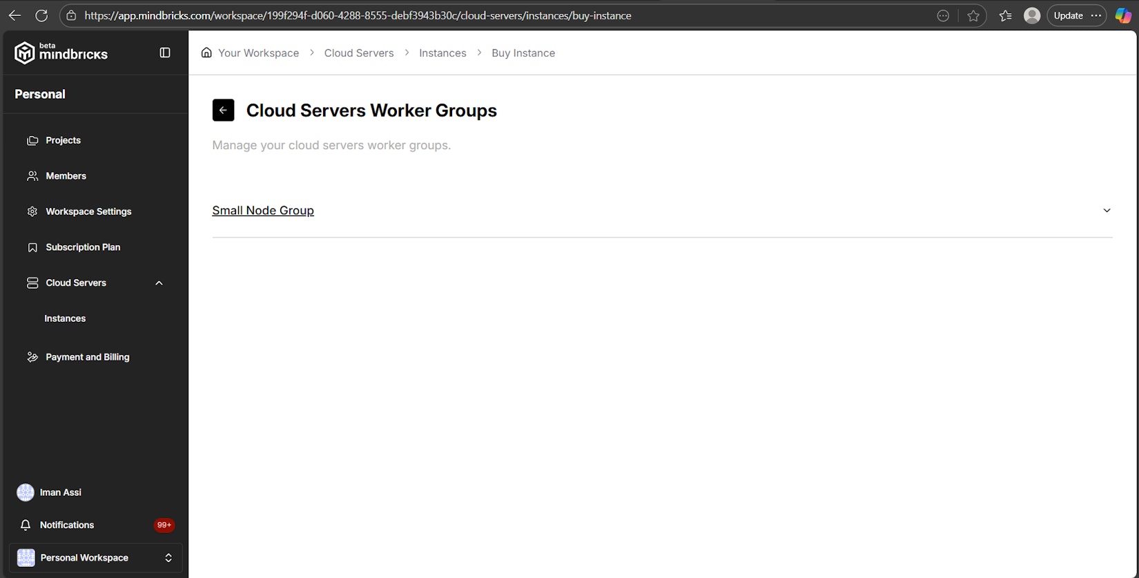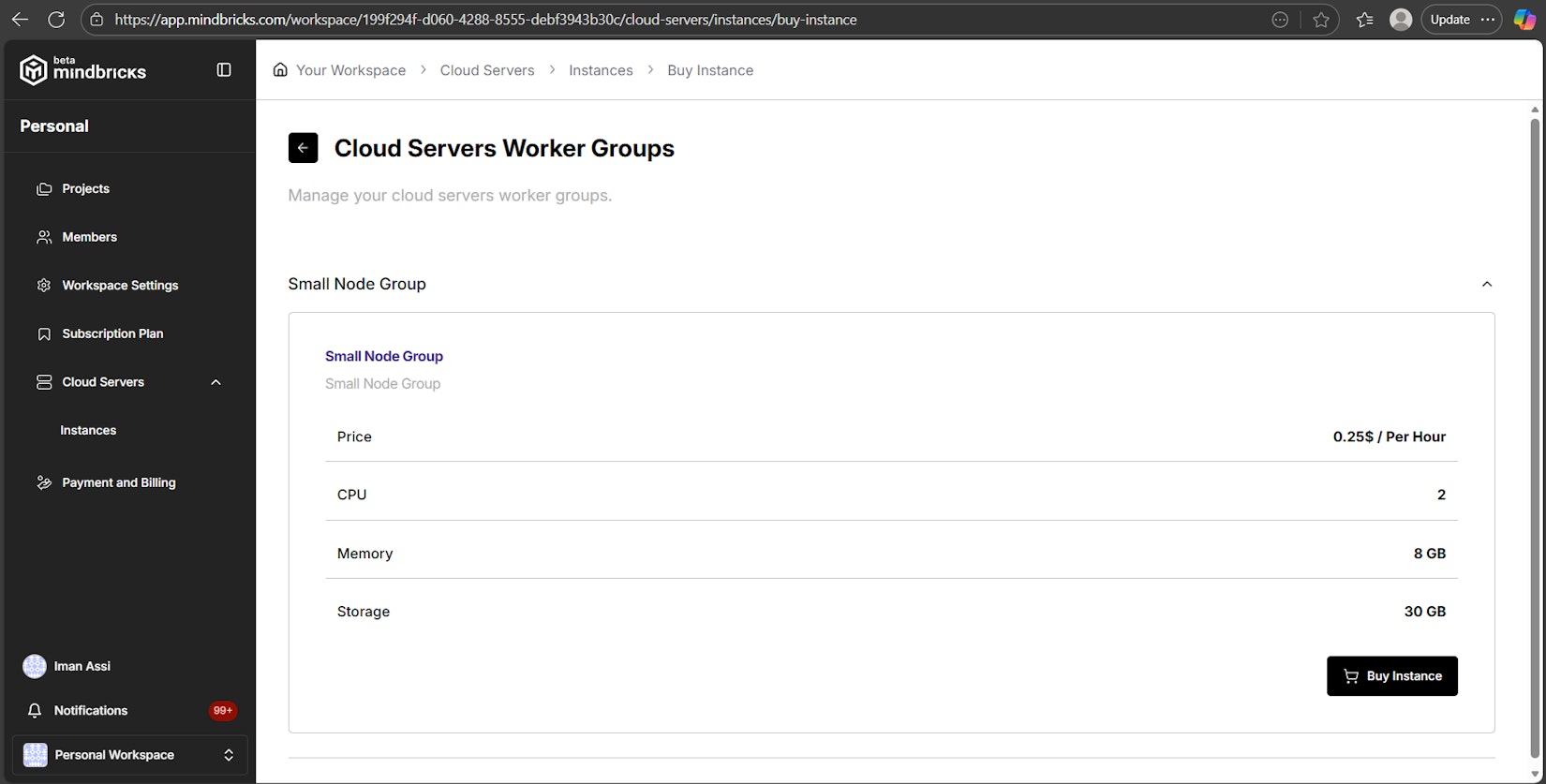 The Instances page shows available server worker groups that you can purchase and deploy.