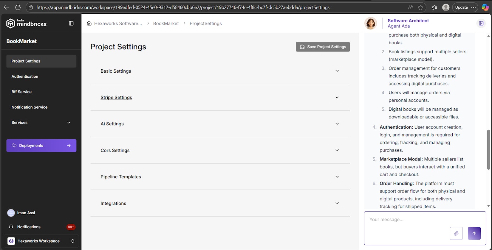 ProjectSettings, StripeSettings, AiSettings, PipelineTemplates.