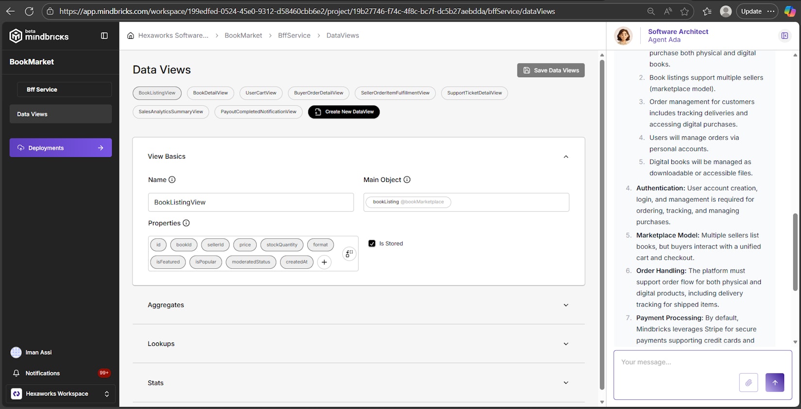 Agent Ada (the AI architect) remains available in the sidebar to help update or generate patterns.